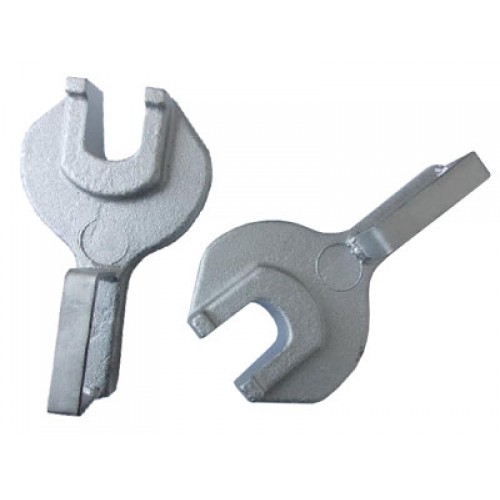 Вилка отбивная М 50 для РТ 1200 муфтово-замкового соединения. Размер зева вилки соответствует ширине прорези бурового замка. Удержание в подвешенном состоянии над устьем скважины колонны бурильных труб при откручивании или закручивании буровых штанг. Вставляется в прорези бурового замка.